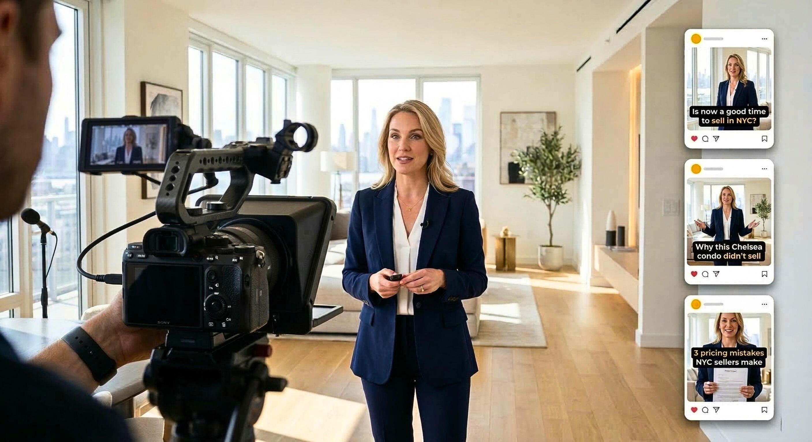 You’ve spent 10+ years building a reputation in NYC and NJ, but sellers are Googling you and seeing a rookie. We bridge the gap. Our "Done-For-You" system turns 4 hours of your month into 8 cinematic videos that command respect. You show up, read the prompter, and go back to closing deals. We handle the rest.